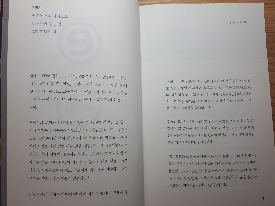 이 책을 사서 집에서 읽었는데, 한동안 모르고 있다가 인트로를 다시 봤는데 거기에 '김민식 MBC PD' 글자가 똭!