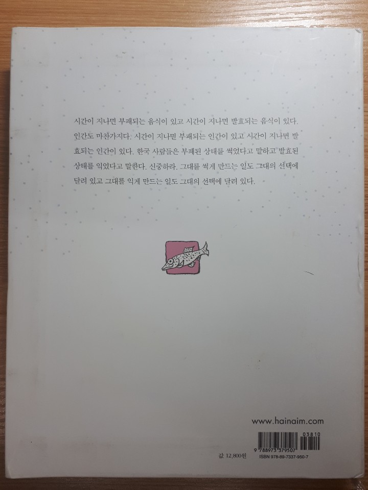 시간이 지나면 부패되는 음식이 있고 시간이 지나면 발효되는 음식이 있다. 인간도 마찬가지다. 시간이 지나면 부패되는 인간이 있고 시간이 지나면 발효되는 인간이 있다. 한국 사람들은 부패된 상태를 썩었다고 말하고 발효된 상태를 익었다고 말한다. 신중하라. 그대를 썩게 만드는 일도 그대의 선택에 달려 있고 그대를 익게 만드는 일도 그대의 선택에 달려 있다.