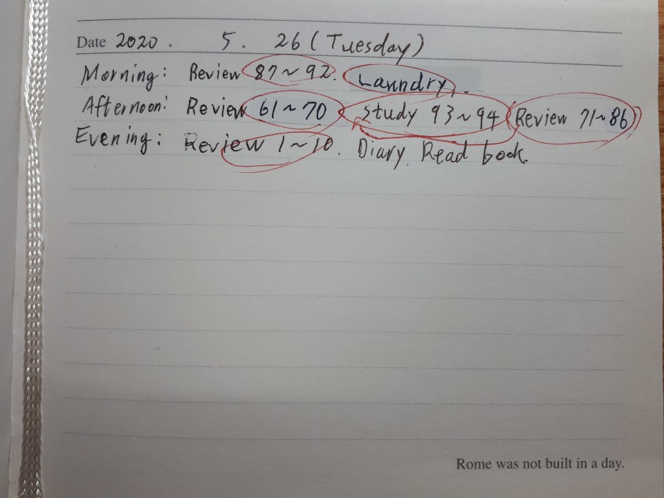 Afternoon: Review 61~70, review 71~86, study 93~94