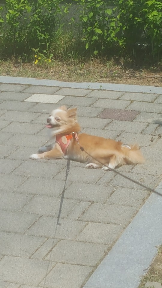 He lives with this dog and took a walk on such a hot day today.