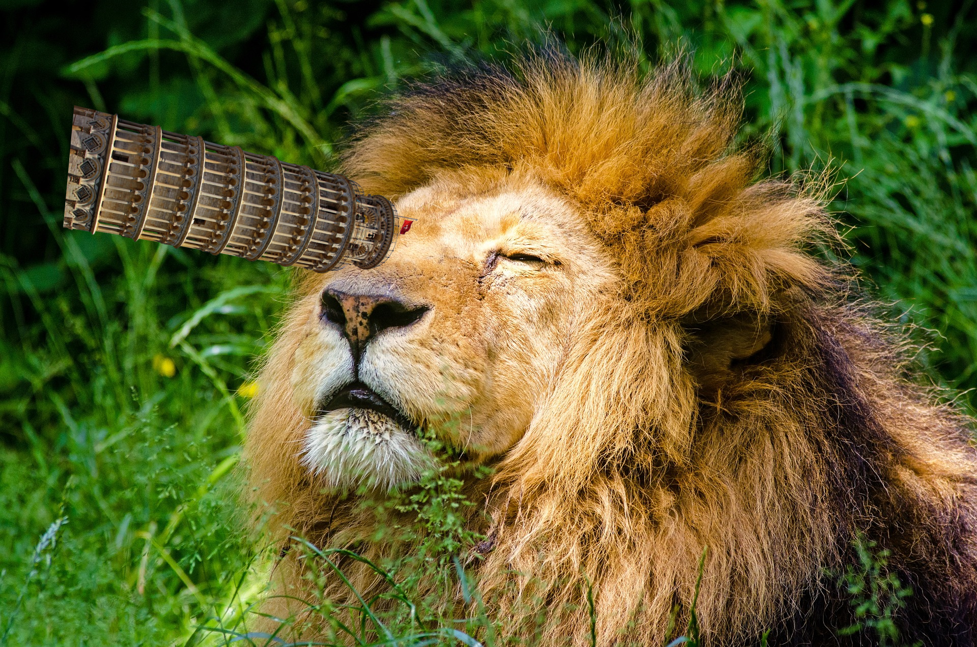 먼 거리 먹잇감을 보고 있는 사자(Feat. 피사의 사탑)