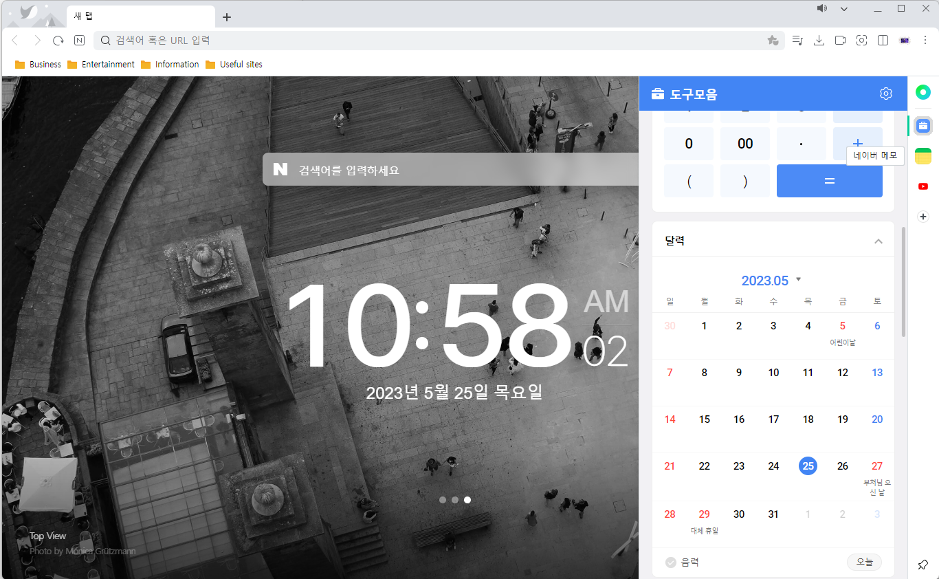 자주 가는 사이트들도 즐겨찾기 하여 폴더에 정리해 놓았습니다. 그리고 계산이 필요하거나 메모가 필요한 경우 오른쪽에 신입사원들을 눌러주기만 하면 빠르고 편하게 이용할 수 있습니다.