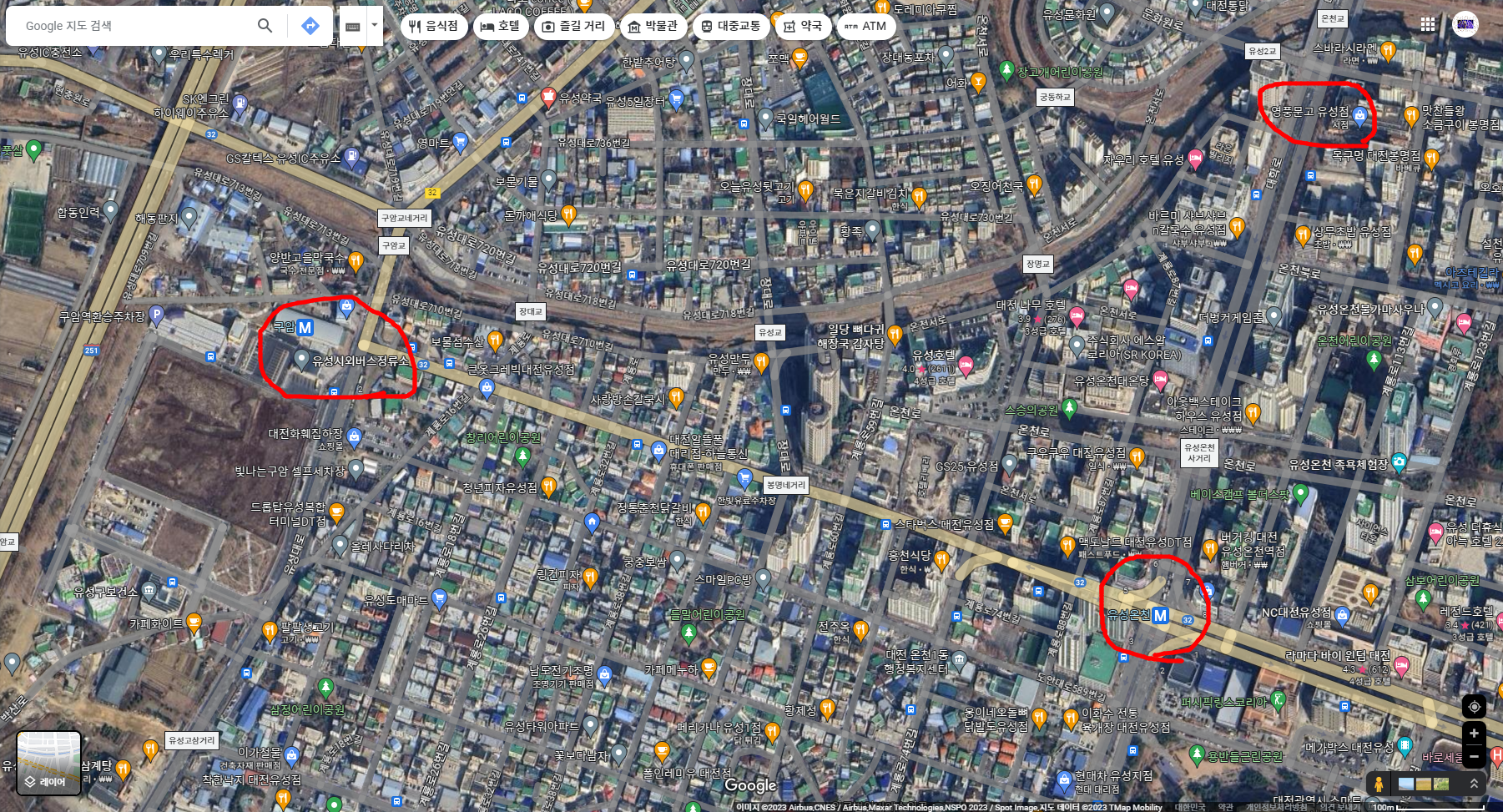 빨간색으로 동그라미 표시한 부분이 제가 자주 출몰하는 지역입니다.