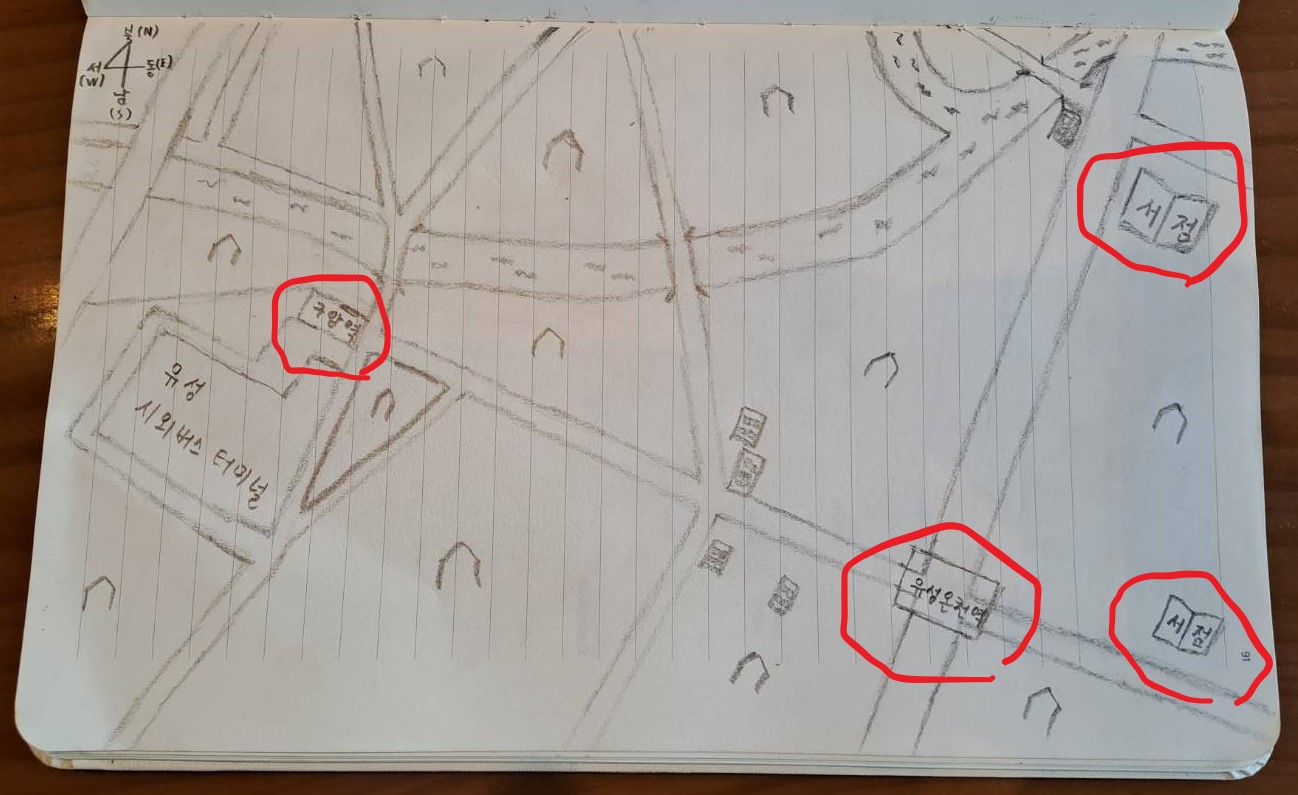 그래서 오늘은 지리 그리기 연습해 볼 겸 친근한 우리 동네를 그려봤습니다.