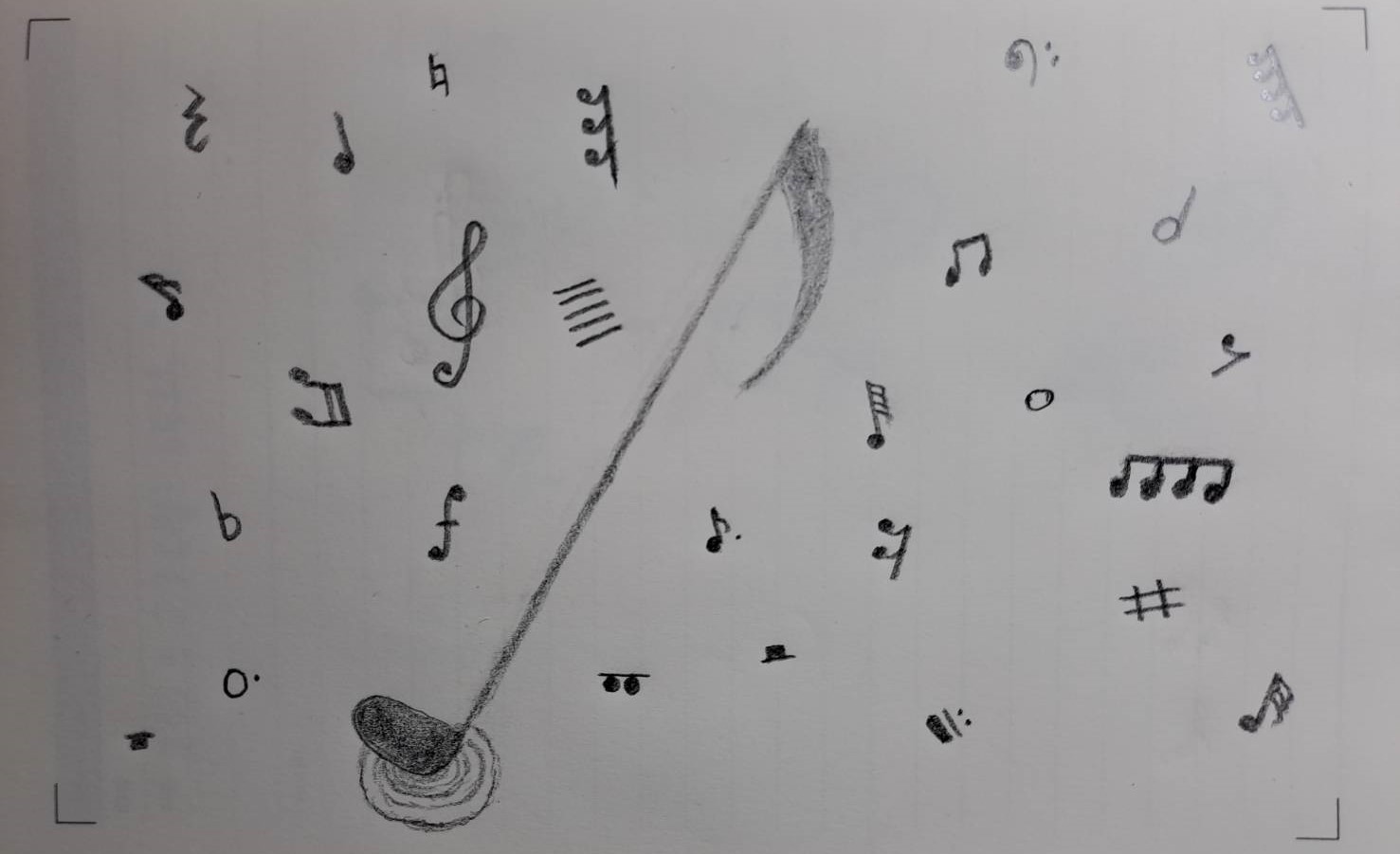 내 마음이 좋아하는 음악을 틀어, 빗소리와 섞여 들리는 음악 소리(힐링 소리)를 그려봤습니다.