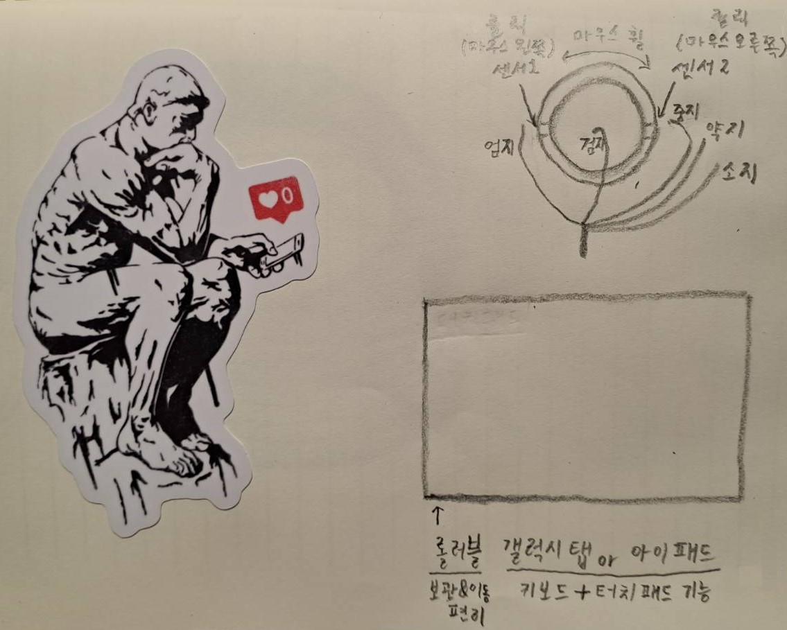 - 마치 마우스 휠을 검지에 끼듯이 스마트 링을 검지에 낌 (엄지로 위아래 돌려대면 모니터에서 마우스 휠 역할)