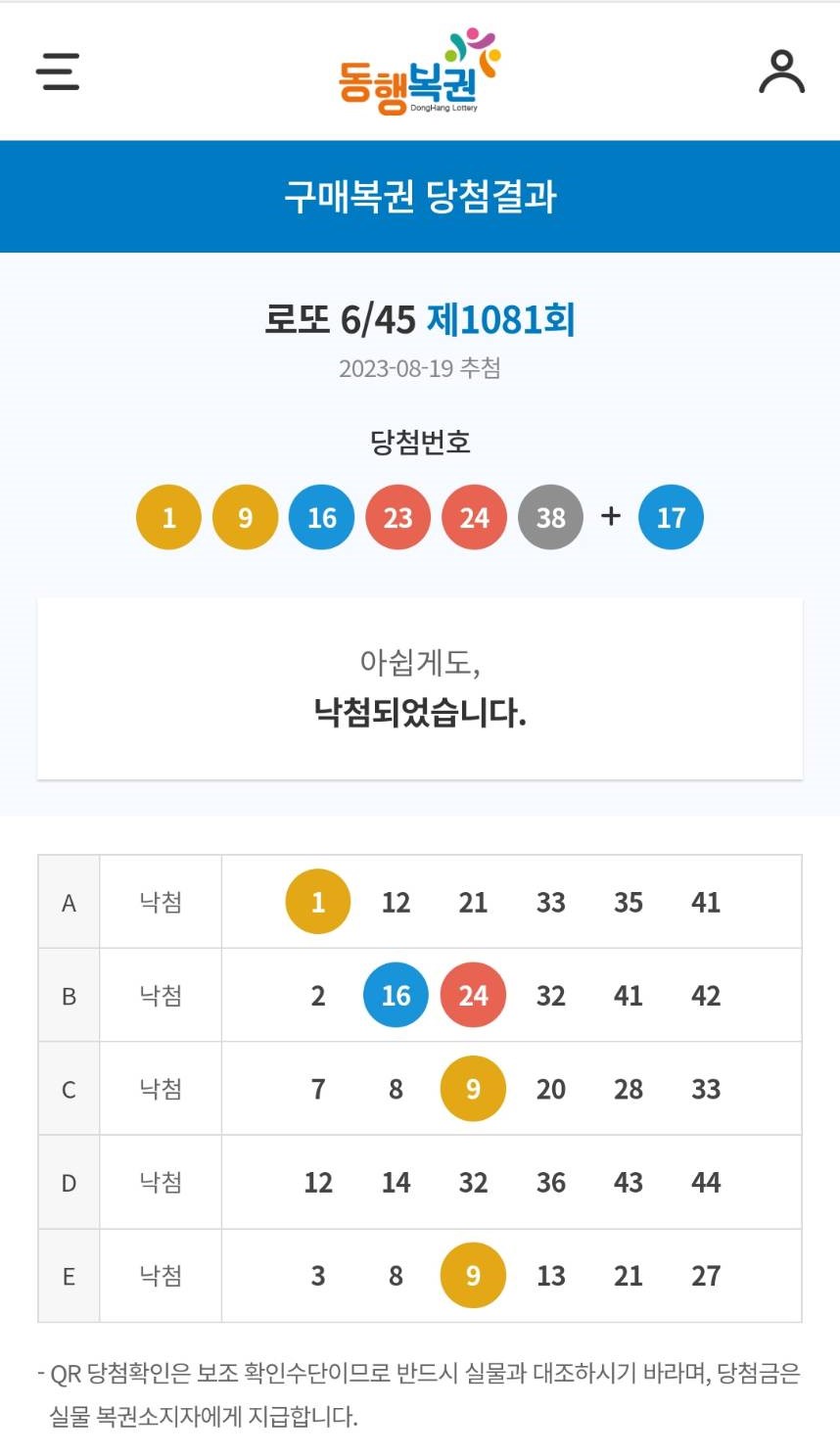 어제 로또 결과. 아... 누가 원기오끄 안줬어...