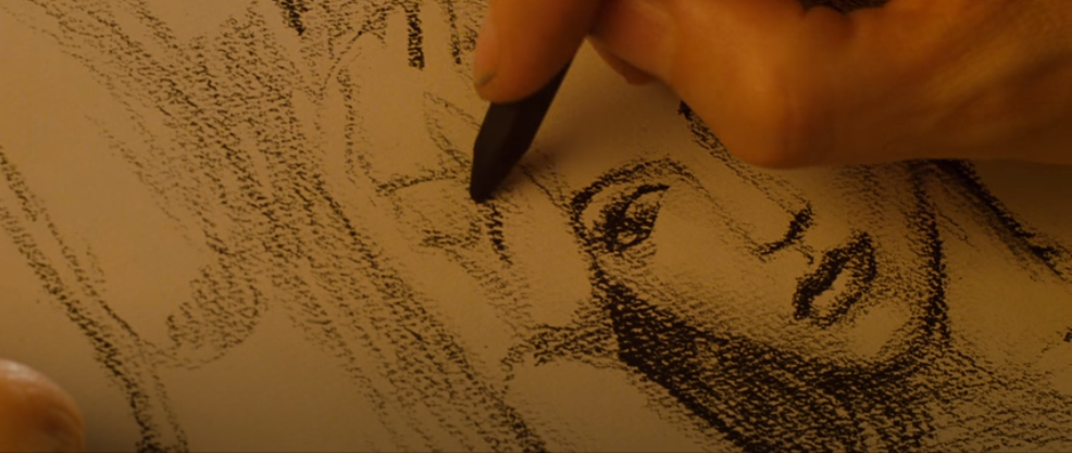 영화 타이타닉에서 그림을 그리는 손, 감독 제임스 카메론이 직접 그리는 장면입니다.