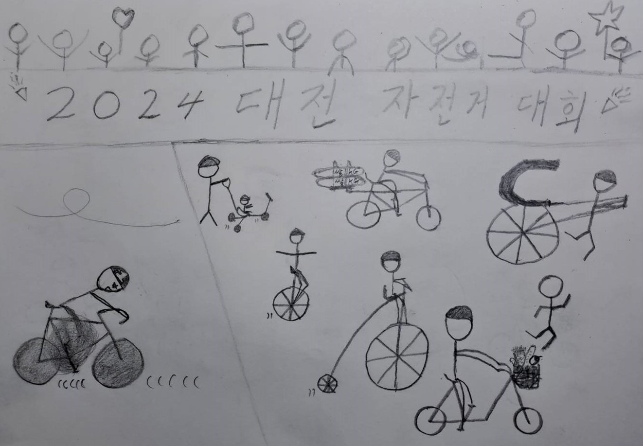 산책을 하다가 자전거를 보고 후진자전거를 그려봤습니다.