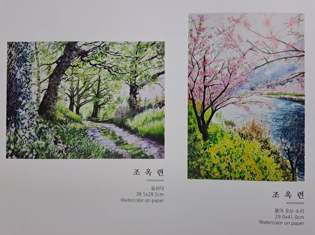 아래 조옥련 화가의 '숨쉬다'라는 제목과 그림을 본 순간, 숲에서 깨끗한 공기를 마시는 듯한 느낌이 들어 좋았습니다.